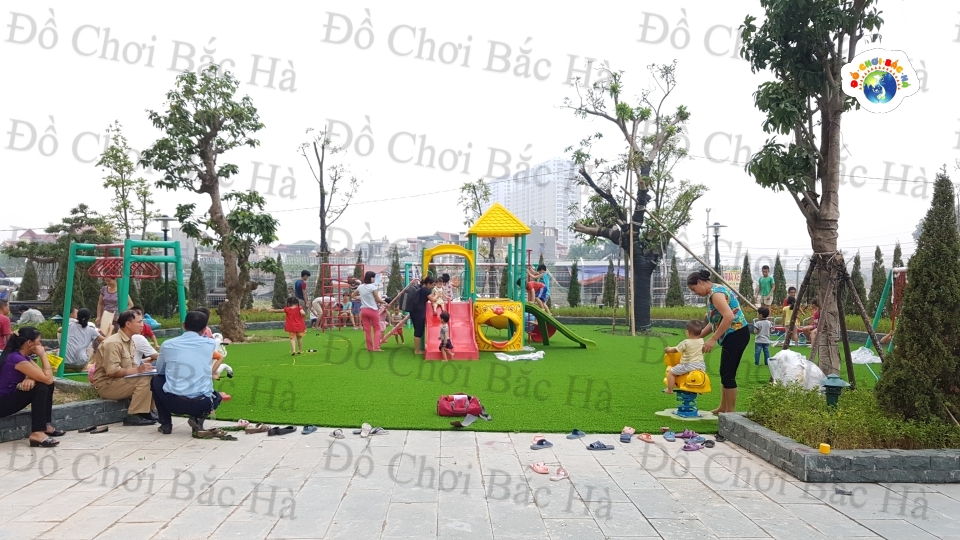 Khung thép ống,Cầu trượt, mái vách và các phù điêu khác làm bằng chất liệu nhựa Composite.