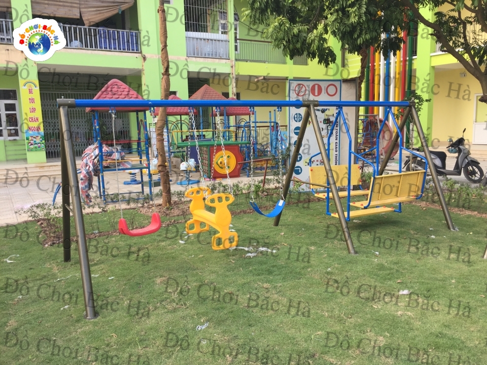 Xà ngang, đòn xích đu bằng thép ống mạ kẽm D76 dày 1,8 mm.