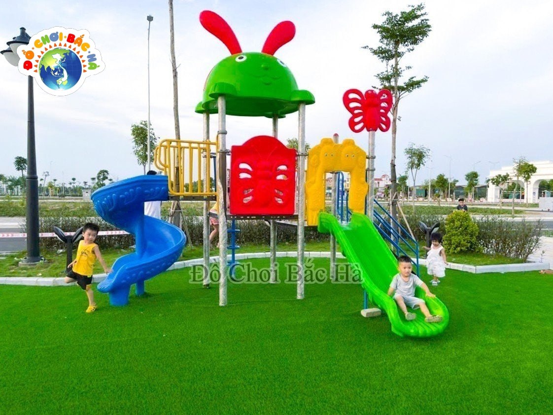 Vách nhựa trang trí mô tả thiên nhiên và con thú: 02 vách lan can sắt: 01 Cung cầu trượt đơn: 01 chiếc |