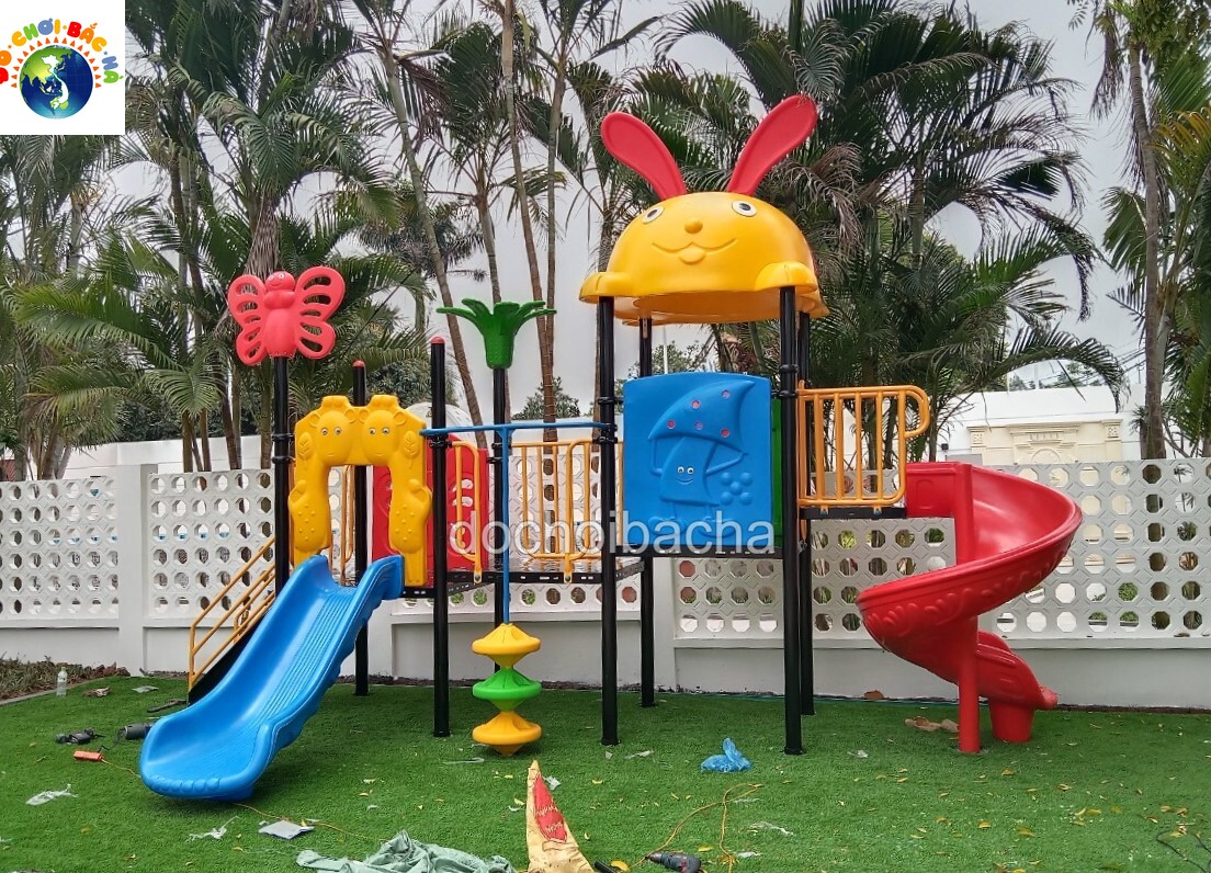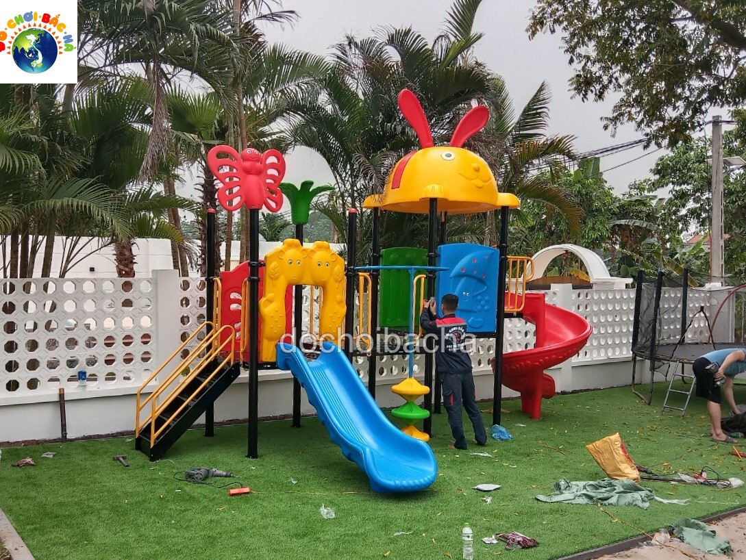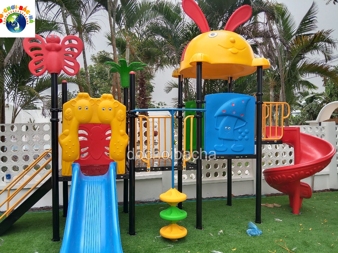Không chỉ là sự kết hợp hoàn hảo giữa chất lượng và an toàn, sân chơi còn gây ấn tượng với màu sắc bắt mắt và các chi tiết trang trí được làm bằng nhựa HDPE nhập khẩu, tạo nên một không gian sống động và thú vị cho trẻ em.