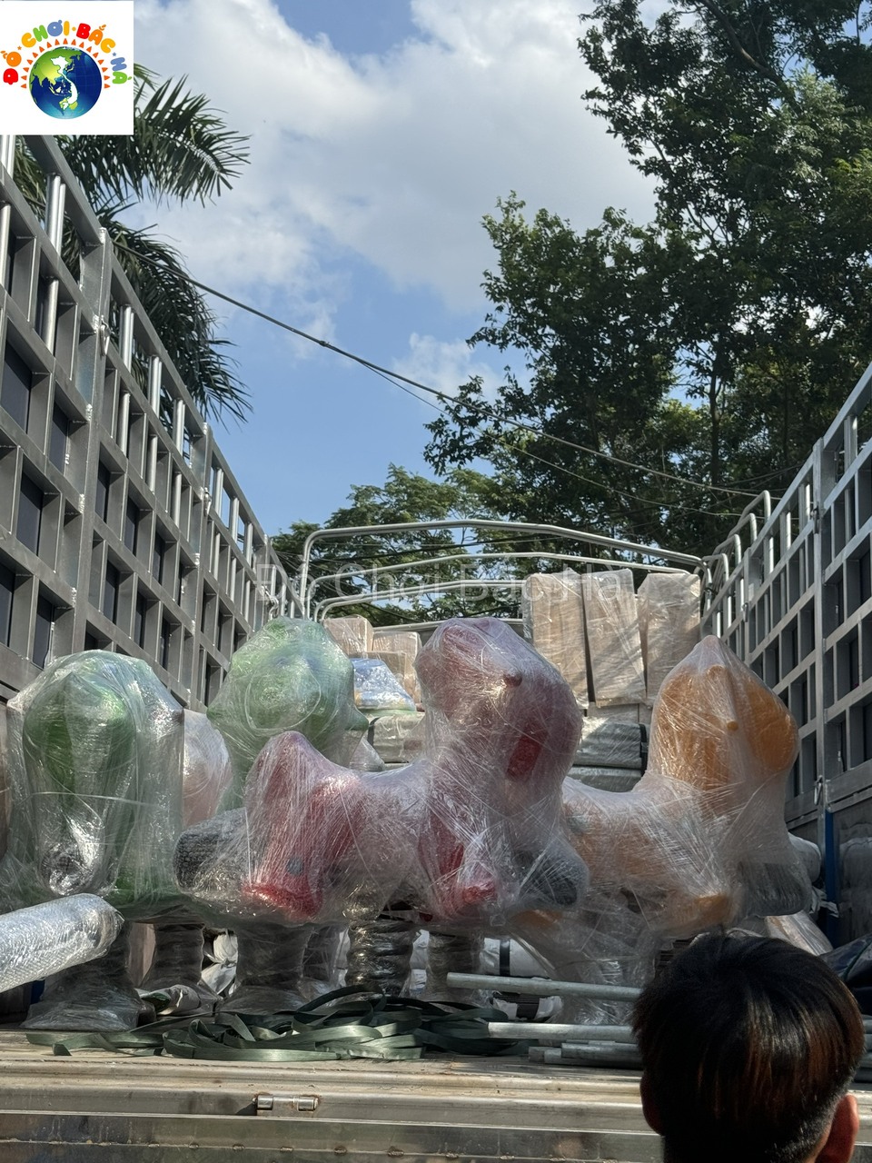 Bộ thú nhún nhập khẩu gồm nhiều con thú nhún khác nhau, tạo nên sân chơi đa dạng và hấp dẫn cho trẻ em. Sản phẩm không chỉ giúp trẻ vui chơi mà còn phát triển thể chất và kỹ năng xã hội.