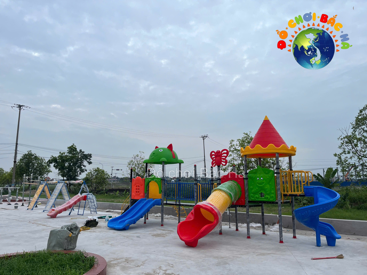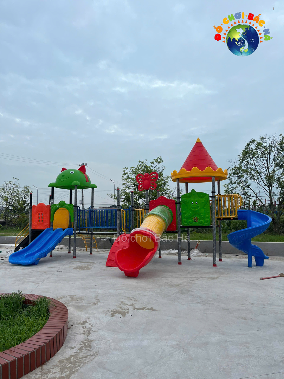 Đây là khu vực đặc biệt thu hút trẻ nhỏ. Với thiết kế đa dạng gồm cầu trượt, cầu thang, lưới leo, ống chui… thiết bị không chỉ tạo sự thích thú mà còn giúp trẻ phát triển vận động toàn diện.