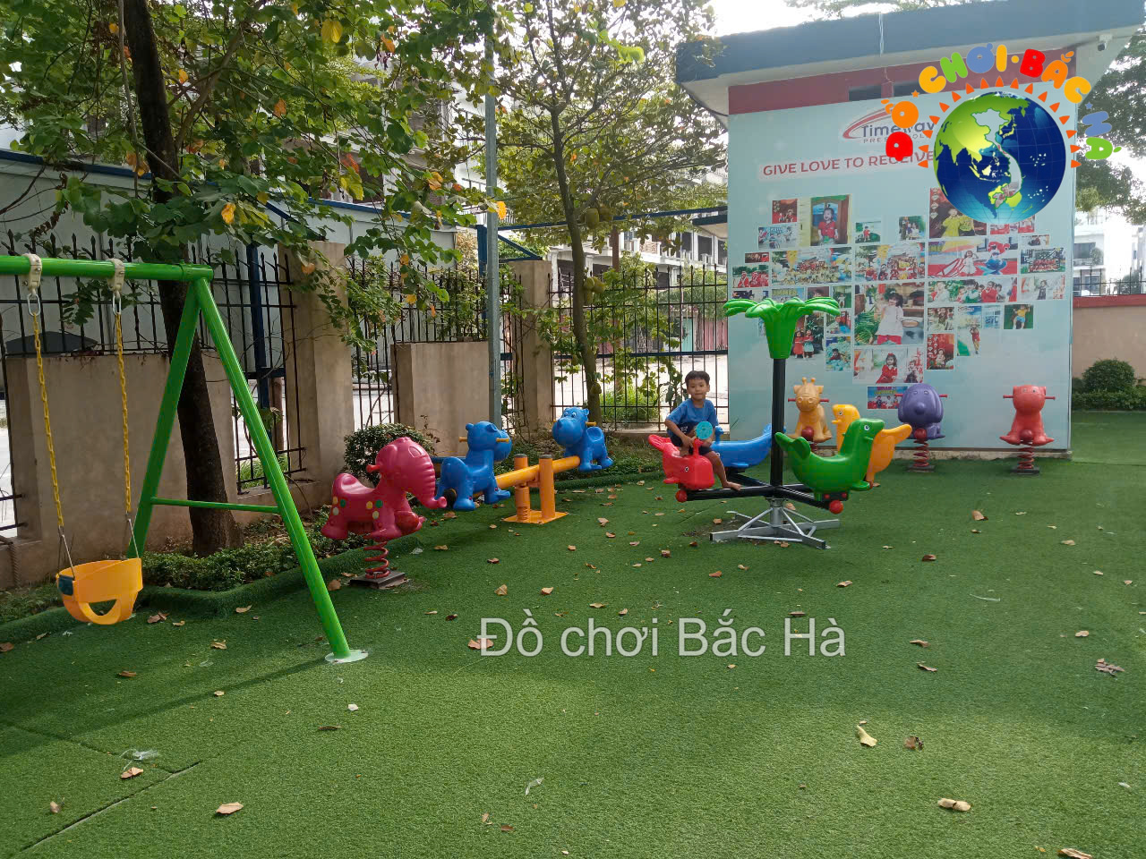 Đu quay là trò chơi kinh điển được trẻ em vô cùng yêu thích. Với chuyển động tròn nhẹ nhàng, thiết bị này không chỉ mang lại cảm giác thú vị mà còn giúp trẻ rèn luyện khả năng giữ thăng bằng, tăng cường cảm nhận chuyển động và phát triển hệ tiền đình.