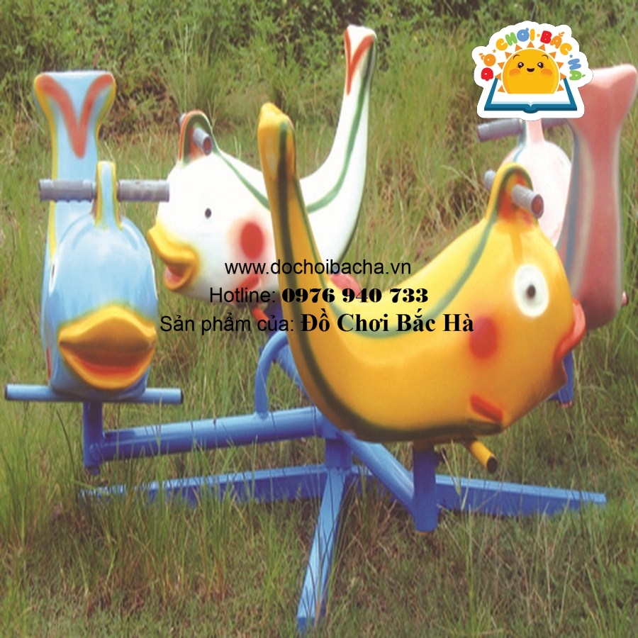 Khung bằng thép, 04 cá heo bằng vật liệu nhựa Composite. Quay bằng trục bi. Trẻ tự hành bằng vô lăng. |