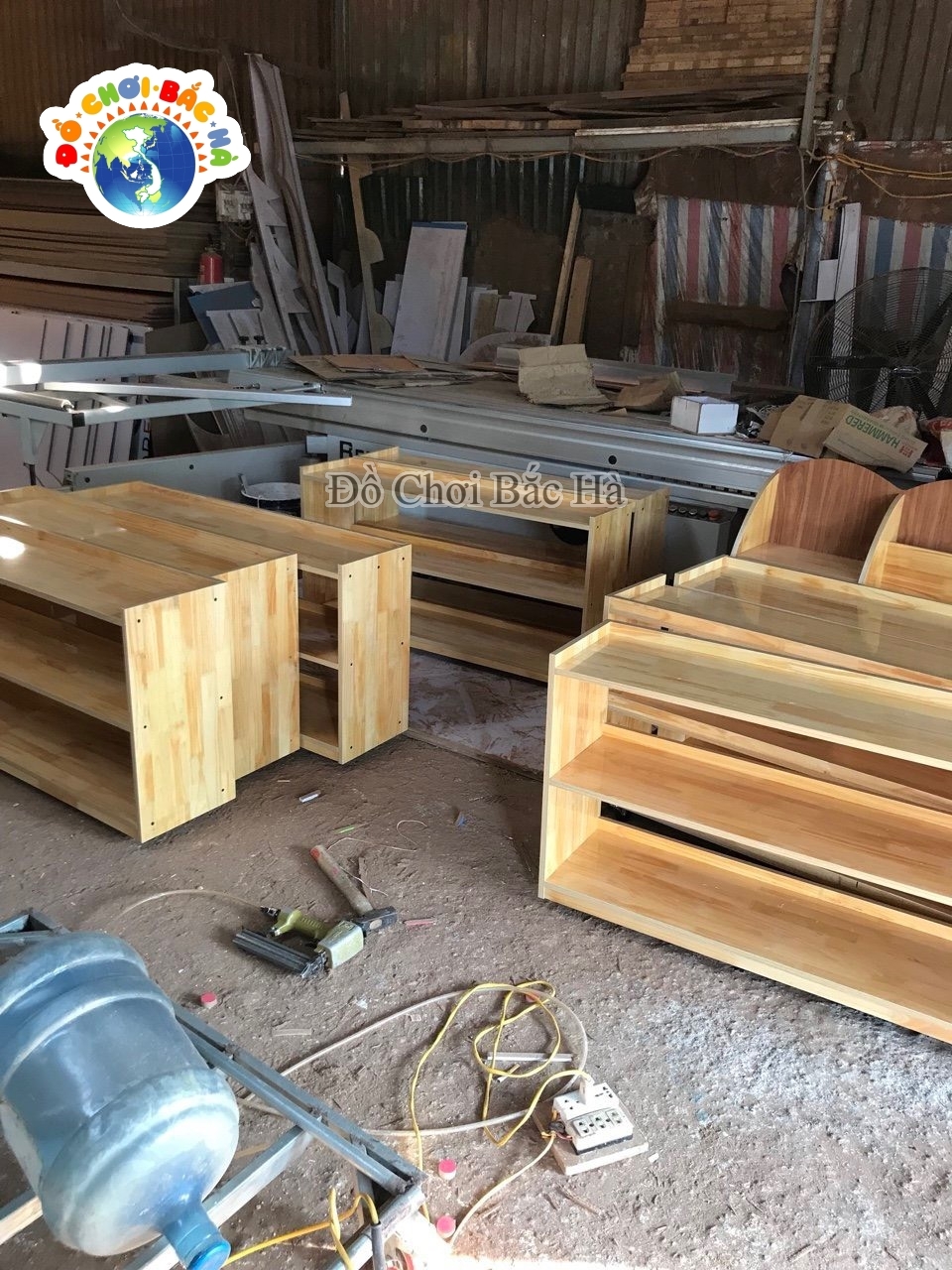 Chất liệu : làm bằng gỗ thông hoặc gỗ cao su ghép thanh Đã qua sử lý chỗng cong vênh, mối mọt. Sơn phủ bóng pu |