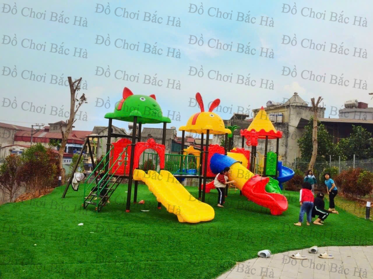 Sự Giao Tiếp Với Thiên Nhiên: Không gian không chỉ giới hạn trong những thiết bị chơi mà còn mở rộng ra sự giao tiếp với thiên nhiên. Cỏ nhân tạo được bố trí một cách tinh tế, kết hợp với cây xanh nhỏ tạo ra một không gian thoải mái và gần gũi với thiên nhiên, giúp trẻ phát triển tình yêu với môi trường xanh.