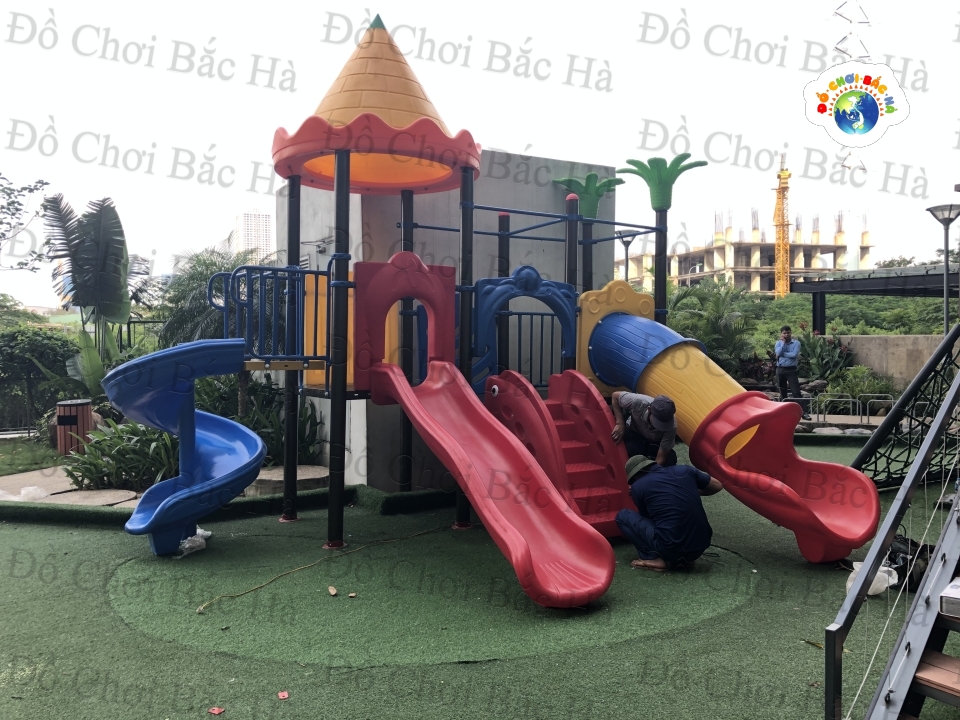 Vật liệu : Bộ liên hoàn cầu trượt gồm … khối nhà. Liên kết với nhau tạo thành 1 khu vận động thể chất nhiều chức năng cho trẻ vui chơi, vận động. Khung chính bằng thép ống mạ kẽm D90 HOẶC D114 dày 1.8 mm. Khung phụ bằng thép ống mạ kẽm D60,42,32,26 dày 1.5 mm tùy từng chi tiết. Sàn nhà nghỉ Kích thước 1.1*1.1*0.7 mm Làm bằng tôn mạ điện chống rỉ dày 1.5 mm. Được đột dập nguyên tấm có lỗ thoát nước, tạo ma sát chống trơn trượt. Cầu thang Kích thước 5 bậc D1480xR545mm Làm bằng tôn mạ điện chống rỉ dày 1.5 mm. Các bậc cầu thang được gấp liền từ nguyên tấm tôn tạo hệ vách và bậc khép kín, mỗi bậc cách nhau 17 cm. Lan can cầu thang được đan dày cách nhau không quá 20 cm. Vách vuông sắt: Kích thước: D950xR860mm khoảng các giữa các nam100mm Tay cong : kích thước D880xR170mm Vách ra cầu trượt xoắn kích thước: D1100xR740mm khoảng cách giữa các nam 100mm Toàn bộ sản phầm được sơn tĩnh điện ngoài trời đủ quy trình. Các chi tiết sản phẩm được kết nối với nhau bằng ốc âm cột, cùm kẹp, bịt đầu ốc ... các thiết bị chuyên dụng đảm bảo tính thẩm mỹ và an toàn cho trẻ em Các chi tiết Mái, cầu trươt, vách ngăn, phù điêu, trang trí đầu cột được làm bằng nhựa LDPE đúc liền khép kín. Mái lâu đài : Kích thước 1400x1400x1800 mm. Có lỗ luồn đầu cột -Cầu trượt thẳng đơn : Kích thước Dài: 2100 m, Rộng: 660mm. Lòng máng trượt 0,5m; Độ cao thành máng: 250mm; Độ dày nhựa: 80mm. Độ cao đến mặt sàn là 900 mm. Đầu cầu trượt tiếp đất có đoạn giảm tốc độ trượt; mặt phẳng máng trượt tạo với mặt đất 1 góc tối đa 45 độ, -Cầu trượt xoắn : Kích thước Cao phủ bì 1560 mm, đường kính 1380 mm hoặc ( 1800*1500mm). Rộng lòng máng: 0.56m, Độ dày nhựa: 90mm. Độ cao đến mặt sàn là 1560 mm. Có trụ sắt F90 Luồn trong lòng cầu trượt được bắt vít cố định xuống nền bê tông. -Cầu trượt ống : Kích thước Ống dài: 2600mm, Đường kính Ống: D630mm ( Gồm 3 đoạn ống màu xanh, đỏ, vàng và vách vuông liên kết với nhau). Độ cao đến mặt sàn là 900 mm. -Vách trang trí hình hoa, lá, nấm, con vật : Kích thước 1015*850*70 mm. có tác dụng giữ an toàn cho trẻ và đảm bảo tính thẩm mỹ. -Trang trí đầu cột: hình lá * quy cách sản phầm được Đồ chơi Bắc Hà sản xuất dựa theo: Thông tư số 32/2012/TT-BGDĐT ngày 14 tháng 9 năm 2012 của Bộ trưởng Bộ Giáo dục và Đào tạo (THIẾT BỊ VÀ ĐỒ CHƠI NGOÀI TRỜI CHO GIÁO DỤC MẦM NON) Mã sản phẩm theo thông tư: MNNT3616 Tên sản phẩm theo thông tư: Bộ vận động đa năng (Thang leo - Cầu trượt - Ống chui) |