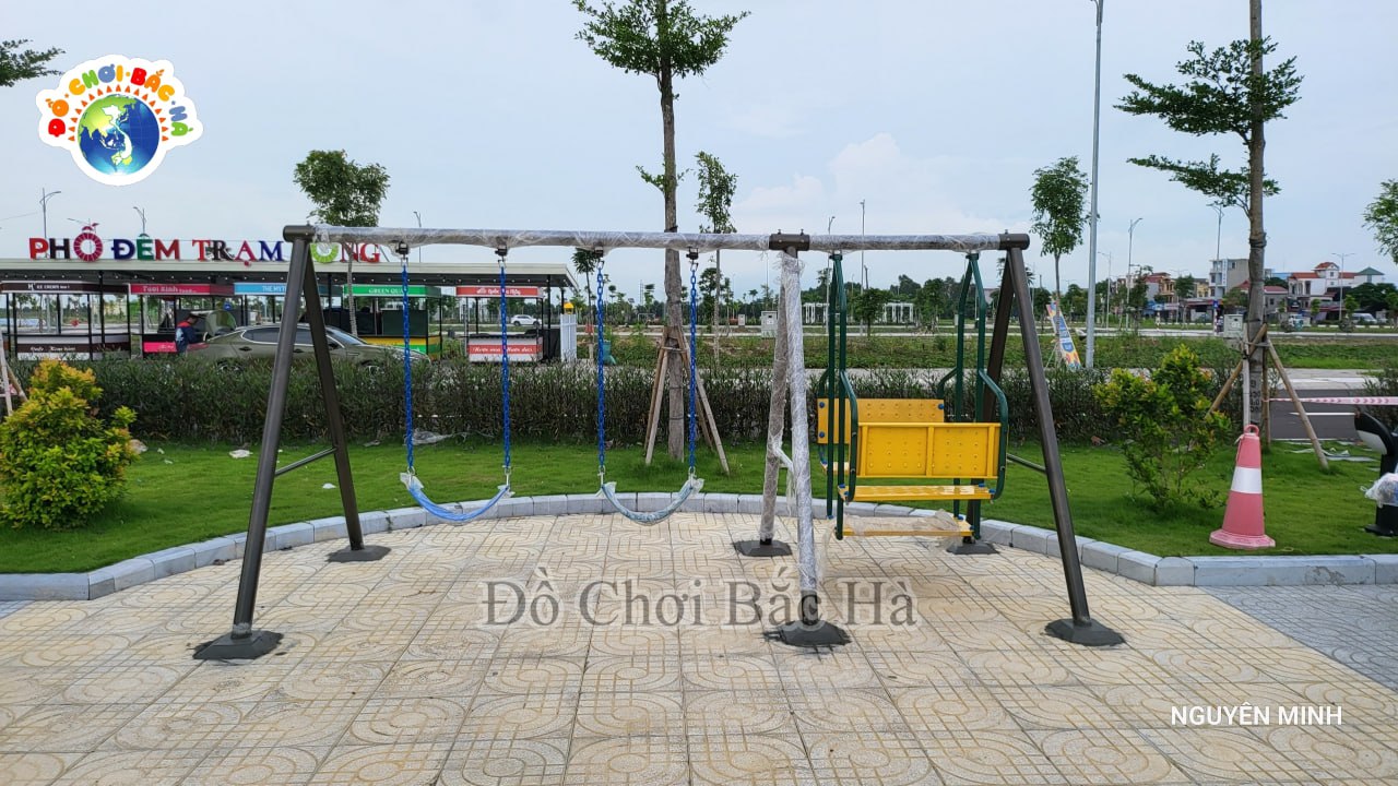 Làm bằng thép ống mạ kẽm chống rỉ F90 HOẶC F76 - Treo ghế xích đu bằng trục bi treo chuyên dụng. Xích treo ghế sơn tĩnh điện hoặc xích bọc nhựa chuyên dụng. - Ghế xích đu có các loại ghế : ghế sàn tôn dập cho 4 trẻ nghồi đối nhau, ghế nhựa - Cầu trượt HDPE |
