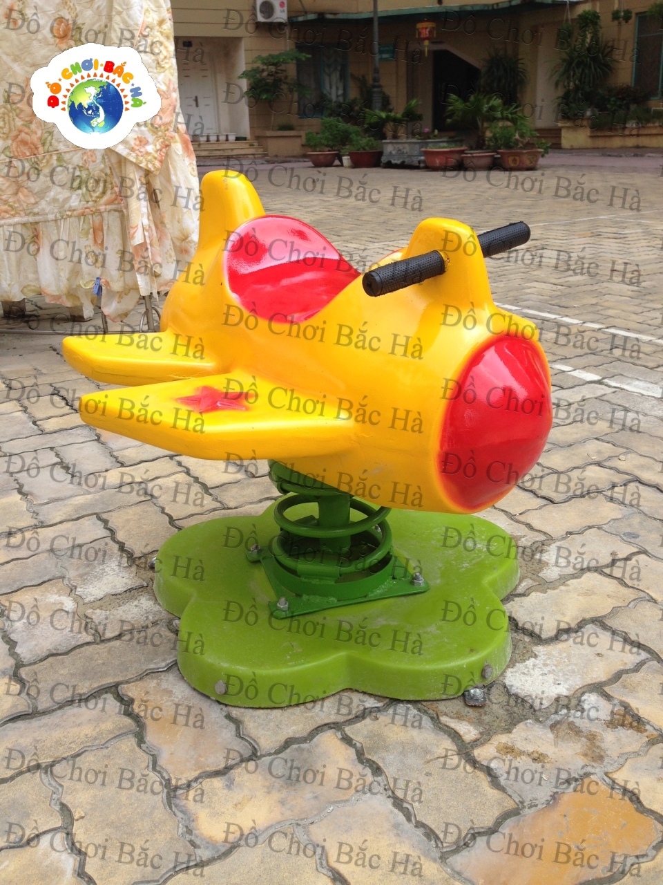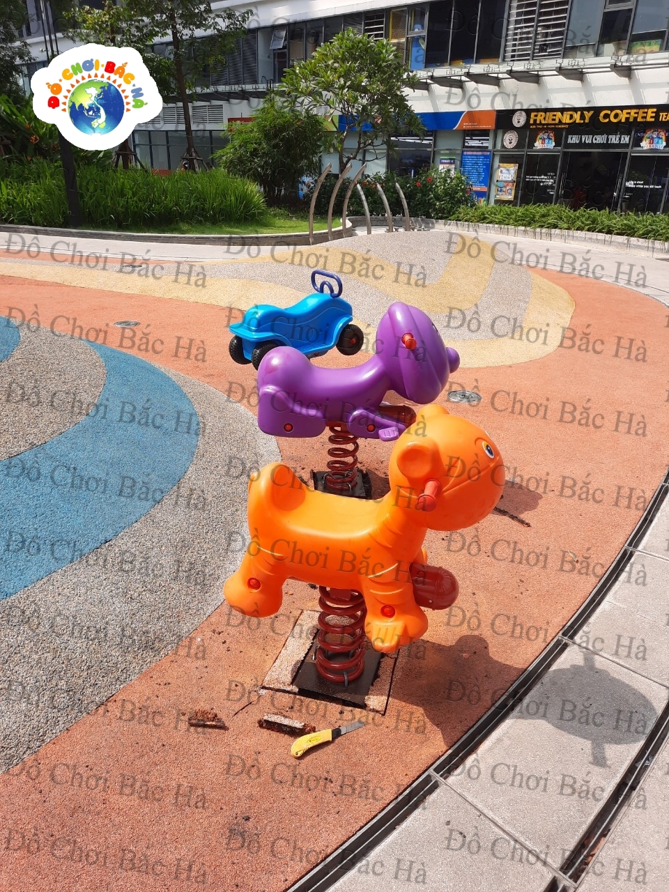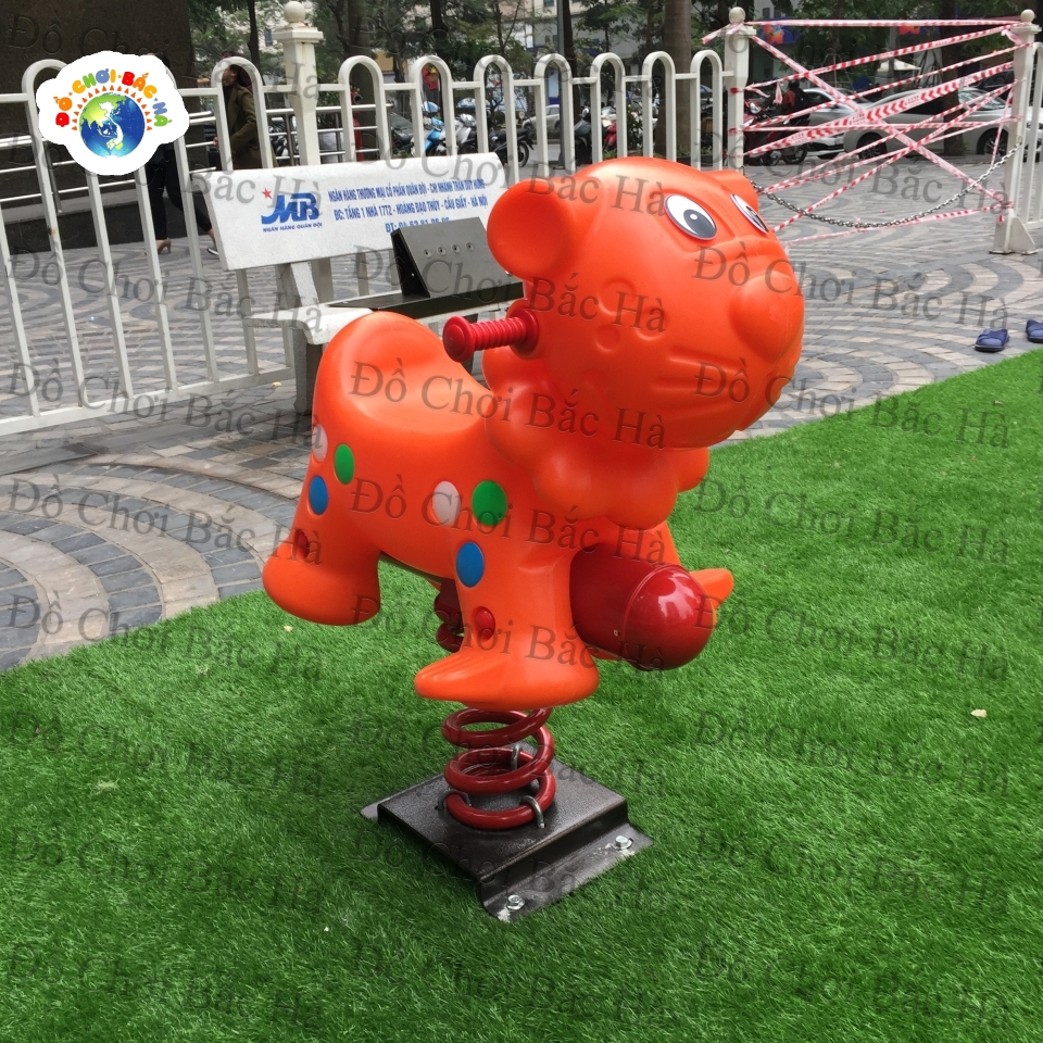 Với thiết kế lò xo chắc chắn, Thú nhún lò xo có thể chịu lực tốt cùng với đế bê tông bọc hoa giúp phụ huynh yên tâm tuyệt đối