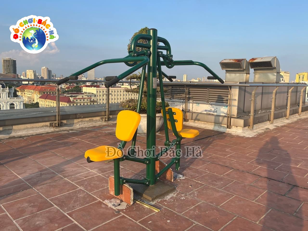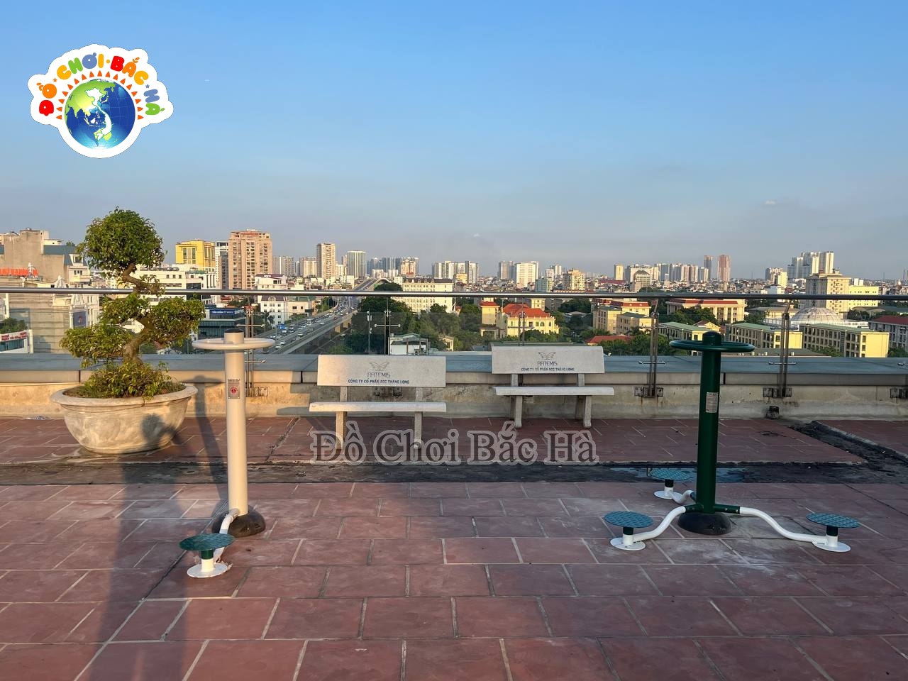Khu tập thể dục ngoài trời bao gồm các thiết bị tập luyện đa dạng như máy đi bộ trên không, máy tập đạp xe, máy tập xoay eo, máy tập tay vai,... Các thiết bị này không chỉ giúp cải thiện sức khỏe cho người dân mà còn phù hợp với mọi lứa tuổi, từ thanh thiếu niên đến người cao tuổi.