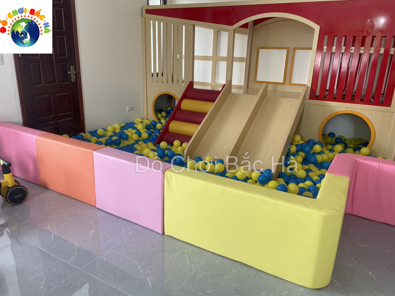 Nhà bóng là một khu vực đầy màu sắc với hàng trăm quả bóng nhựa. Trẻ em có thể nhảy vào và chơi đùa trong những quả bóng này, giúp giảm căng thẳng và phát triển kỹ năng vận động.
