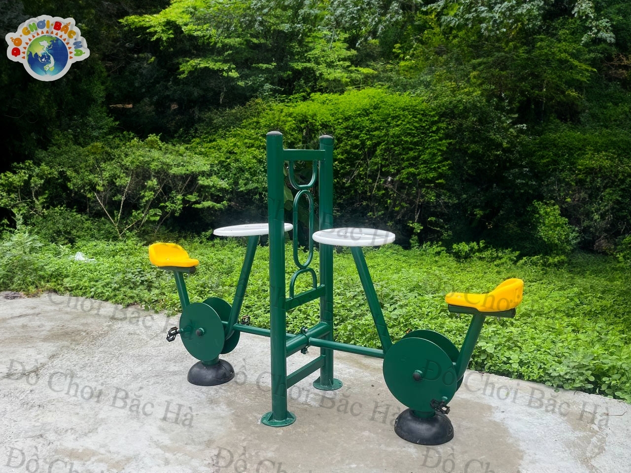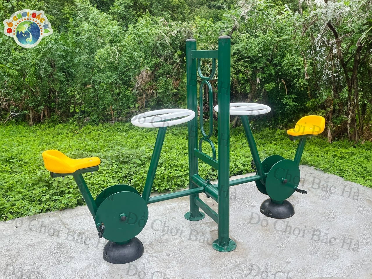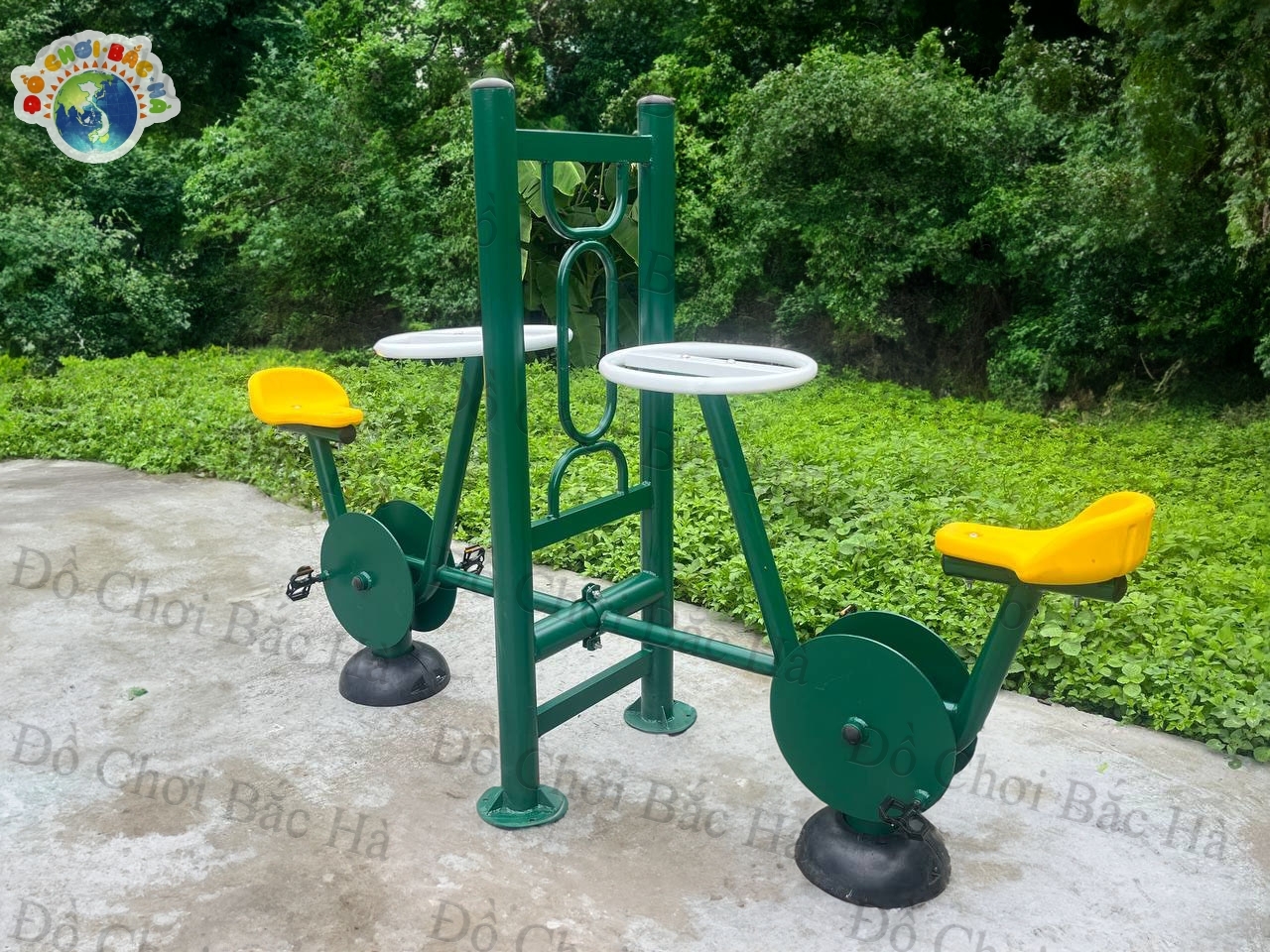 Đạp xe: Đặt 2 chân lên bàn đạp.Đưa tay lên nắm 2 cần tay phía trước.Điều chỉnh lưng thẳng.Di chuyển chân một cách từ từ và nhịp nhàng đạp xuống như khi đi bộ Lưu ý: Lặp đi lặp lại động tác nhiều lần để đạt hiệu quả tốt nhất.  |