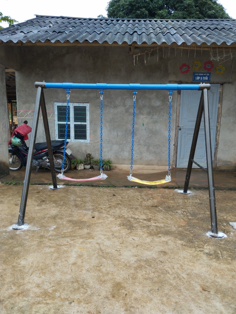 Khung bằng thép ống mạ kem f76 dày 1.8mm. Sơn tĩnh điện toàn bộ. Ghế treo bằng nhựa dẻo . Treo xích. Giao động bằng hệ chục bi cùm chuyên dụng |